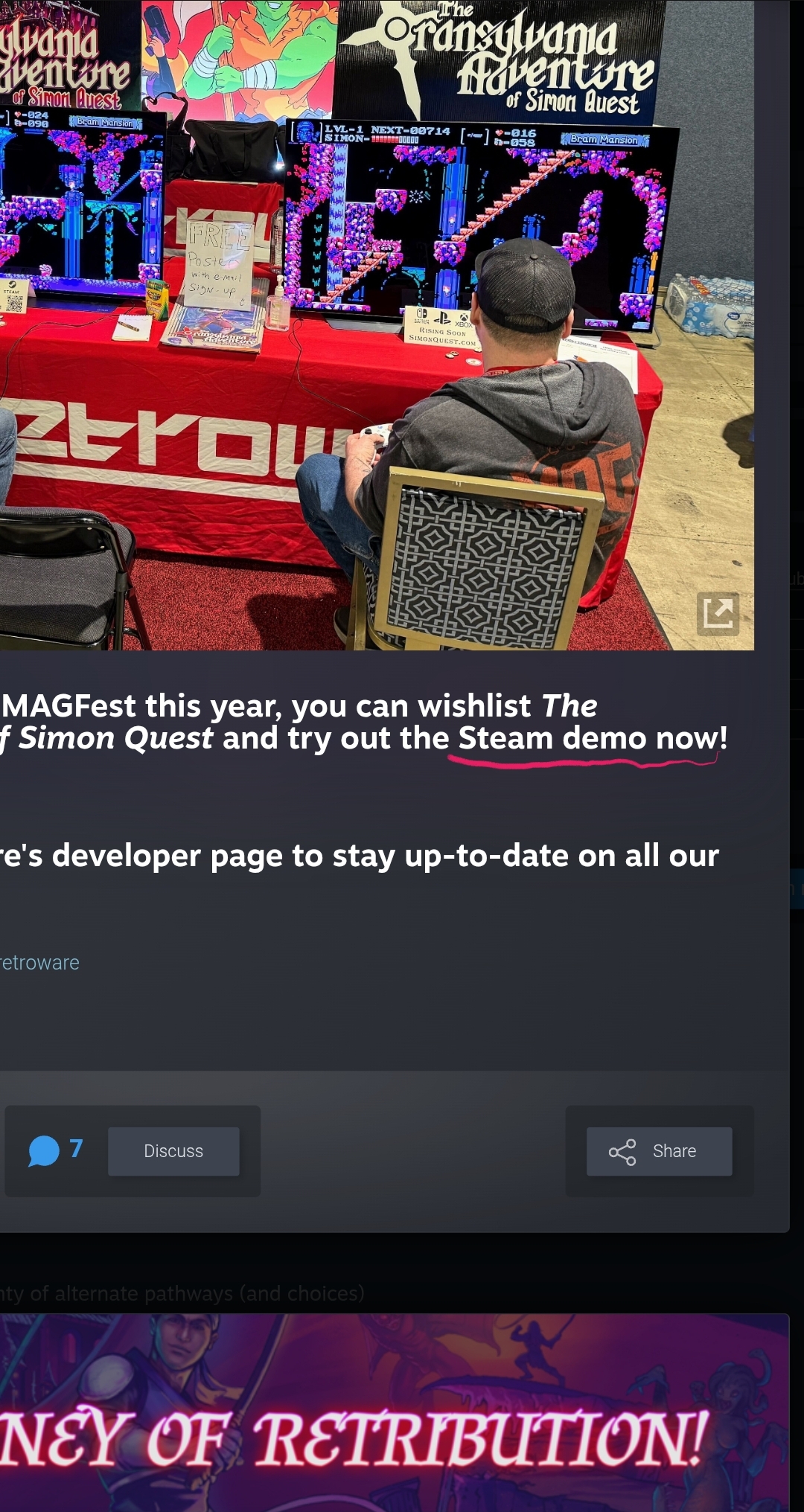 On the steam page it says it..I really wanna play this game bad...I grew up playing nes and remember how hard it was to get simons quest...I actually hadda get it from a video store that rented them...that was my secret way of getting hard 2 get nes games..im a very big fan of castlevania games and have played every one in existence!!id luv to play this new demo...there hasn't been a good castlevania game in years..yours looks really good and can't wait to get it.